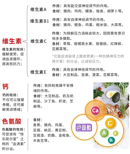 為了改善“春季不適”癥狀,維持身心的健康,建議積極攝取富含“維生素”、“鈣”及“色氨酸”的食物。