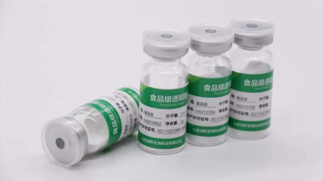 在食品添加劑中添加透明質酸鈉作為營養基用,而口服含透明質酸鈉的食品則是為了起到補充機體水分、改善骨骼關節功能、保護胃黏膜等眾多功效。在食品級別應用中其對透明質酸鈉中純度的要求,相較于醫藥級別沒有那么高,但對微生物的要求會高一些。因為人體消化道極端的PH和其他益生菌的存在,使得其對蛋白等物質不需要做嚴格的要求也可以充分發揮其功能,所以對于食品級來說其相對低純度的透明質酸鈉就能滿足大部分廠家的需求。
