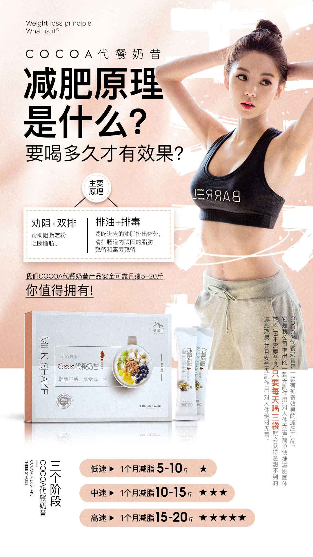 所以利用羅湖山COCOA代餐奶昔補充身體里缺失的營養,改變不良飲食結構,養成均衡的飲食習慣,拒絕高油高糖的食物,適當的運動,才能做到健康的減肥。